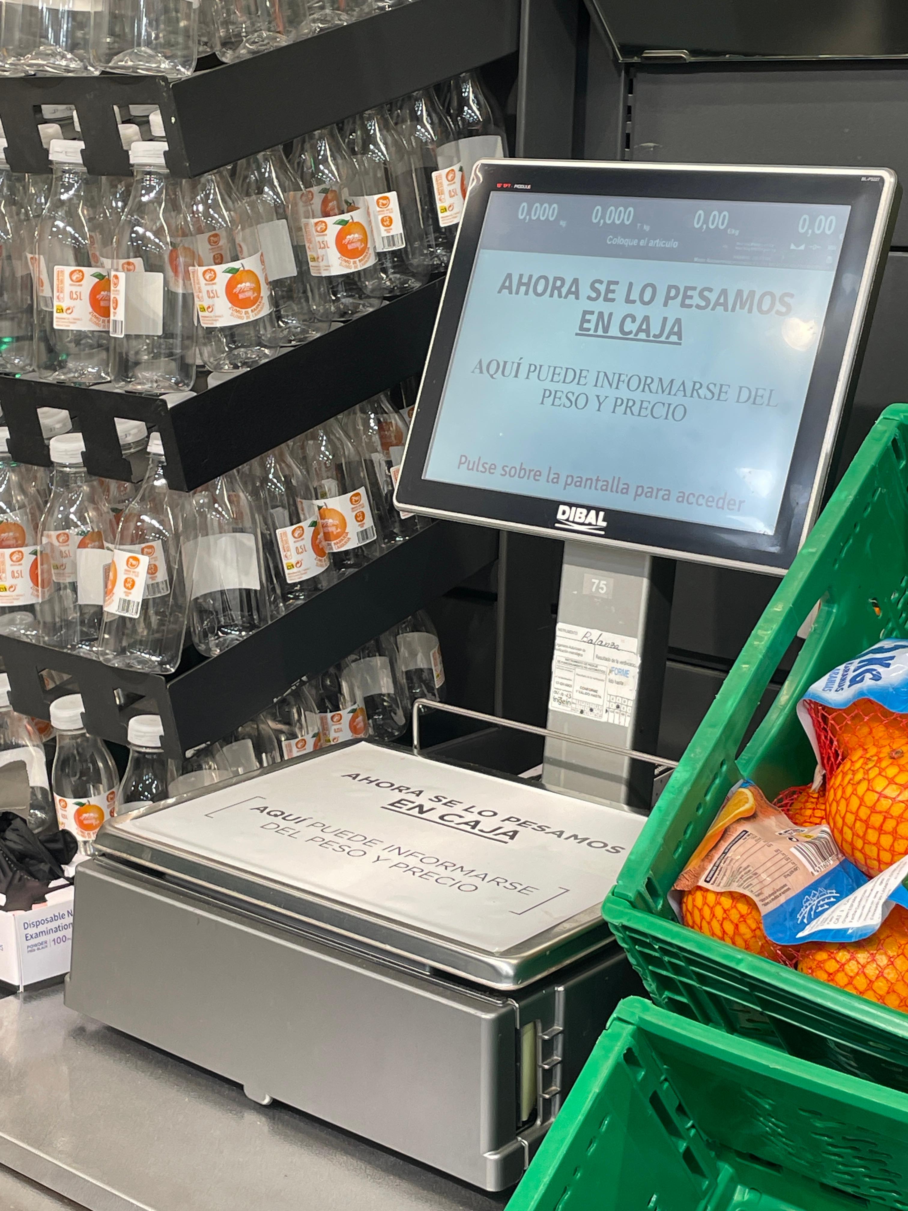 보통 마트에 가면 직접 무게를 측정해서 스티커를 봉지 겉에 붙여야 하는데 계산대에서 직접 무게를 달고 계산을 한다고 쓰여있었다.