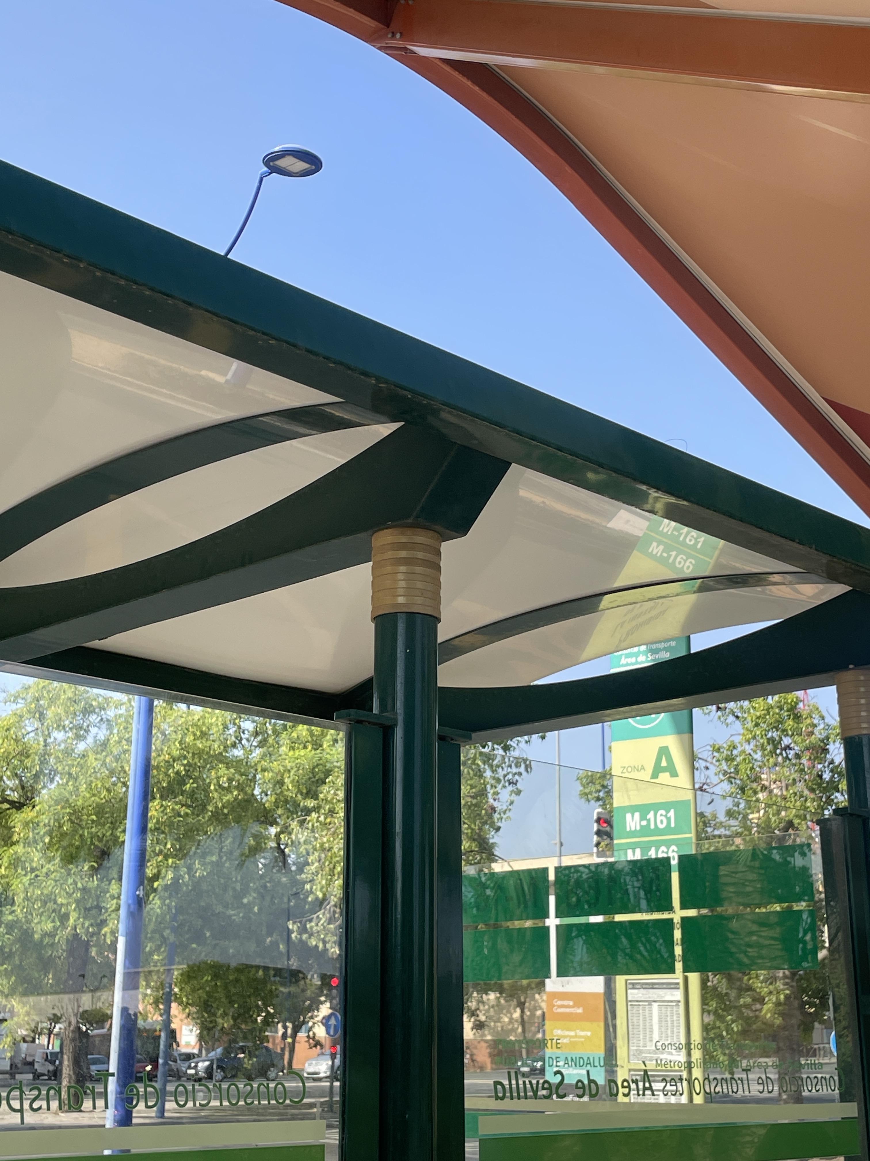 세비야 타워 (Torre de Seville)가 보이는 곳에 버스정류장이 엄청 많다.